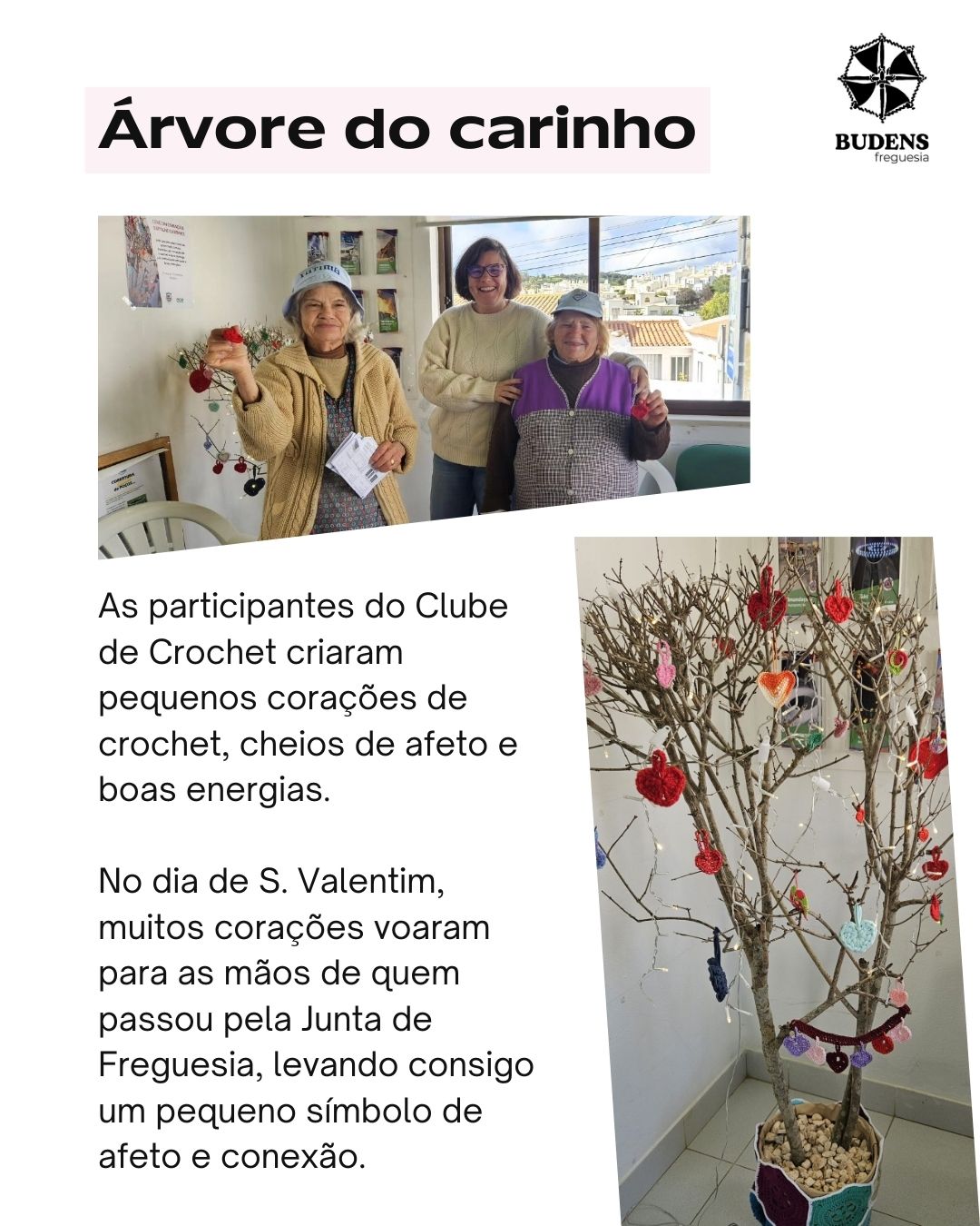 🔹 A Árvore do Carinho, onde distribuímos corações de crochet para espalhar afeto pela comunidade.
