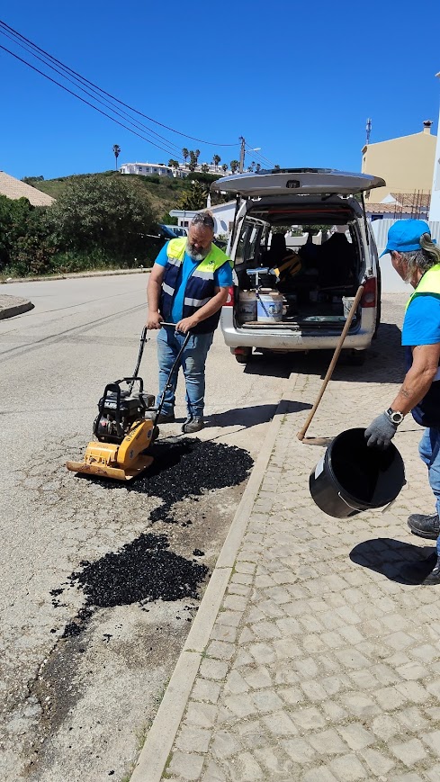 Durante esta semana, a Junta de Freguesia esteve no terreno a realizar trabalhos de manutenção e reparação de pavimento, com intervenção em várias ruas de Budens e Vale de Boi.